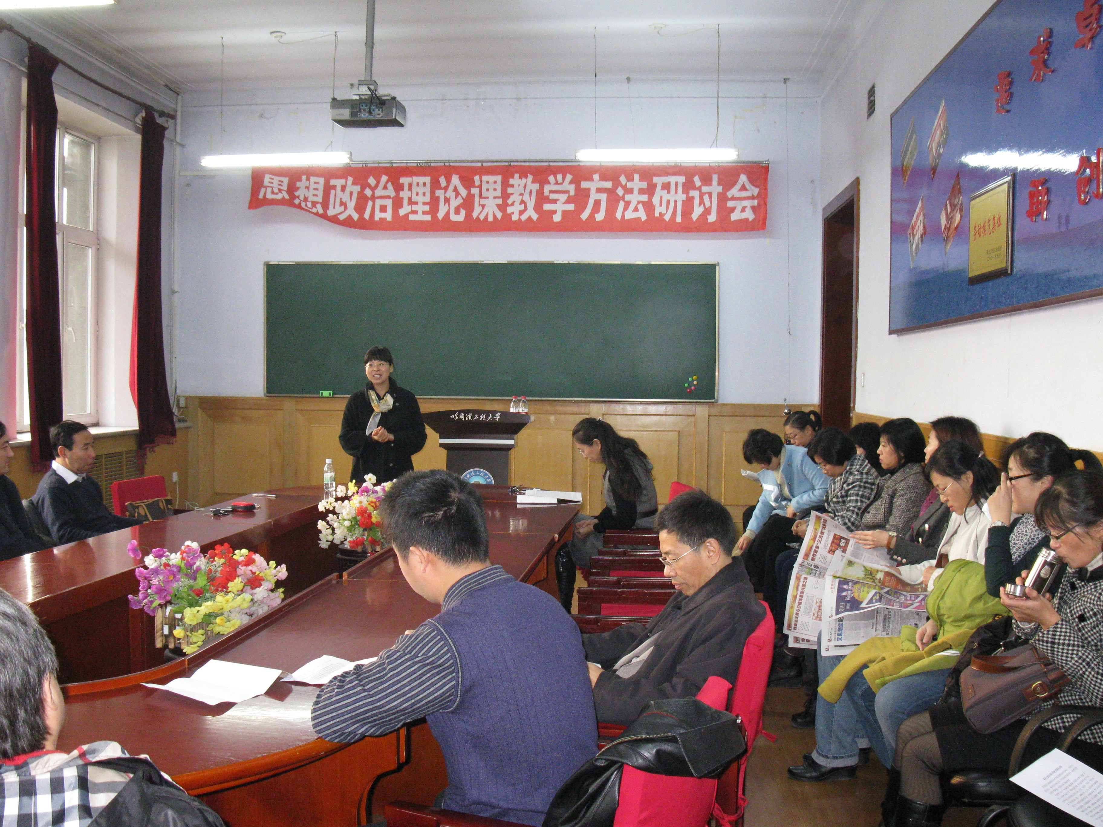 为进一步推进和深化思想政治理论课教学方法改革,提高教学质量,促进我部教师之间的沟通和交流,思政教研部2011年思想政治理论课教学方法研讨会于