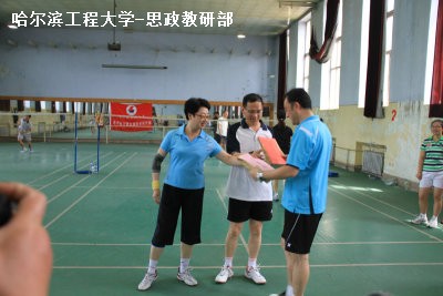 比赛为三局两胜制,以谁先到11分为一小局的胜利方。每组取前两名球队进入下一轮决赛。决赛6支队伍循环比赛,按成绩排出一等奖队伍1支,二等奖队伍2支,三等奖队伍3支。其余12支队伍为优秀奖。陈坤、秦军以高超的球技夺得冠军,成为二届思政部羽毛球比赛冠军得主。蔡文学、胡雪萍,杨威、梅学霞屈尊亚军,姜虹、王国学,裴丽、徐兴华,杨华、刘贵占获得季军。
