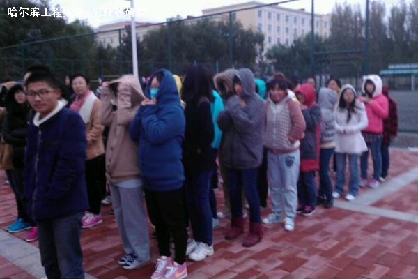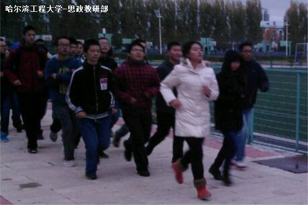 哈尔滨的天气渐渐变冷了,为了提高同学们的身体素质,增加御寒能力,思政部开展新生晨跑活动。由于哈尔滨的早晨特别寒冷,同学们特意穿上了厚实的衣裳参加到晨跑运动中来,保暖措施做的很好。