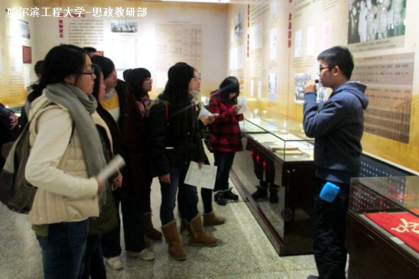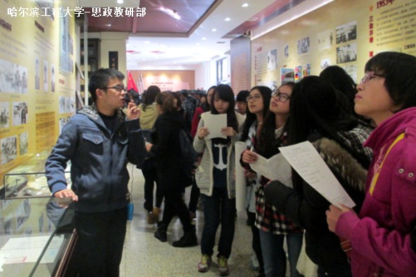 10月31日中午12时20分,思政部组织学生参观哈军工纪念馆。同学们在纪念馆门前集合,由志愿讲解员带领同学们参观。