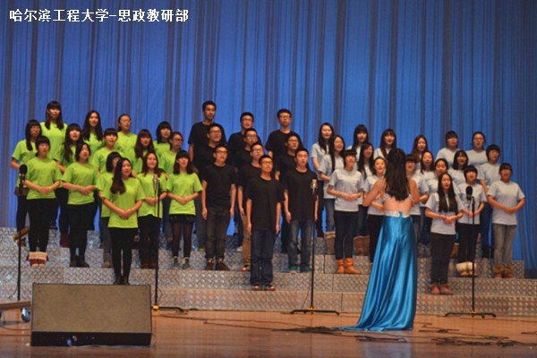 思政部由大一大二学生组成的合唱队参加此次比赛,比赛曲目为同桌的你和阳光总在风雨后,文艺部副部长李美莹担任指挥。 前期思政部合唱队已经为比赛做了充足的准备,利用课余时间在41#楼积极进行训练,在大家的配合下,合唱队训练取得了很大的效果。下午四时整,合唱队在启航二楼大厅进行了最后一次练习,随后进入剧场进行彩排。17时30分,大家放松休息,为即将到来的比赛积蓄力量。 晚19时整,比赛正式开始。思政部同学们是第六个出场。同学们身穿事先准备好的合唱T恤服装,整体气质独特清新,令人眼前一亮。比赛过程中,大家发挥稳定,各个声部协调配合非常完美,整体效果非常好,精神饱满,声音优美洪亮,最后完美谢幕。 这是思政部第一次参加合唱比赛,虽然有很多不足之处,但是取得成绩还是值得鼓励的。