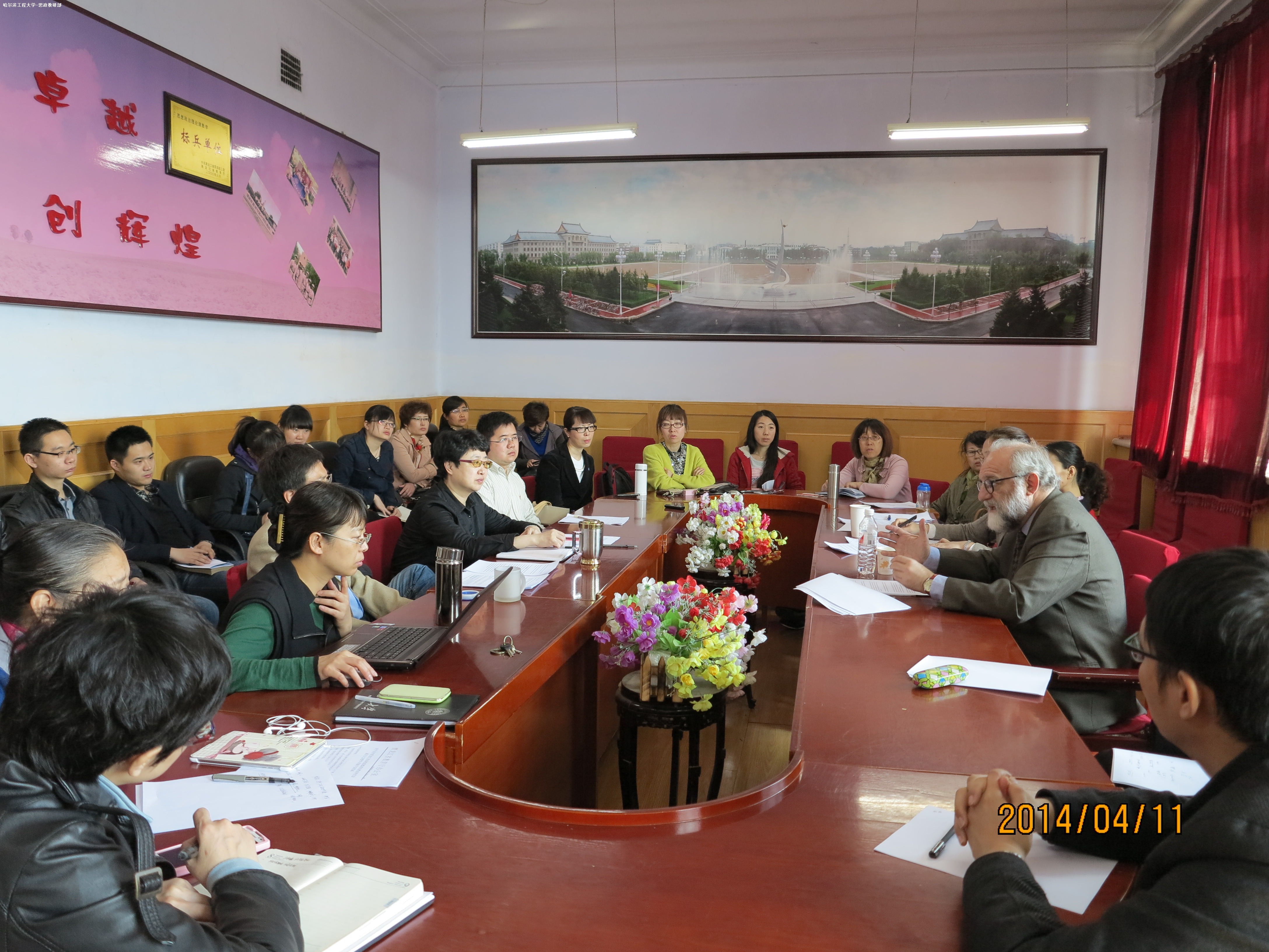 思政教研部副主任程早霞主持报告会。谭.戈伦夫教授就中美关系特别是中国的西藏问题从他的视角作了简要陈述,他的观点视角独特,发人深省。思政部师生与谭.戈伦夫教授作了广泛而热烈的交流。