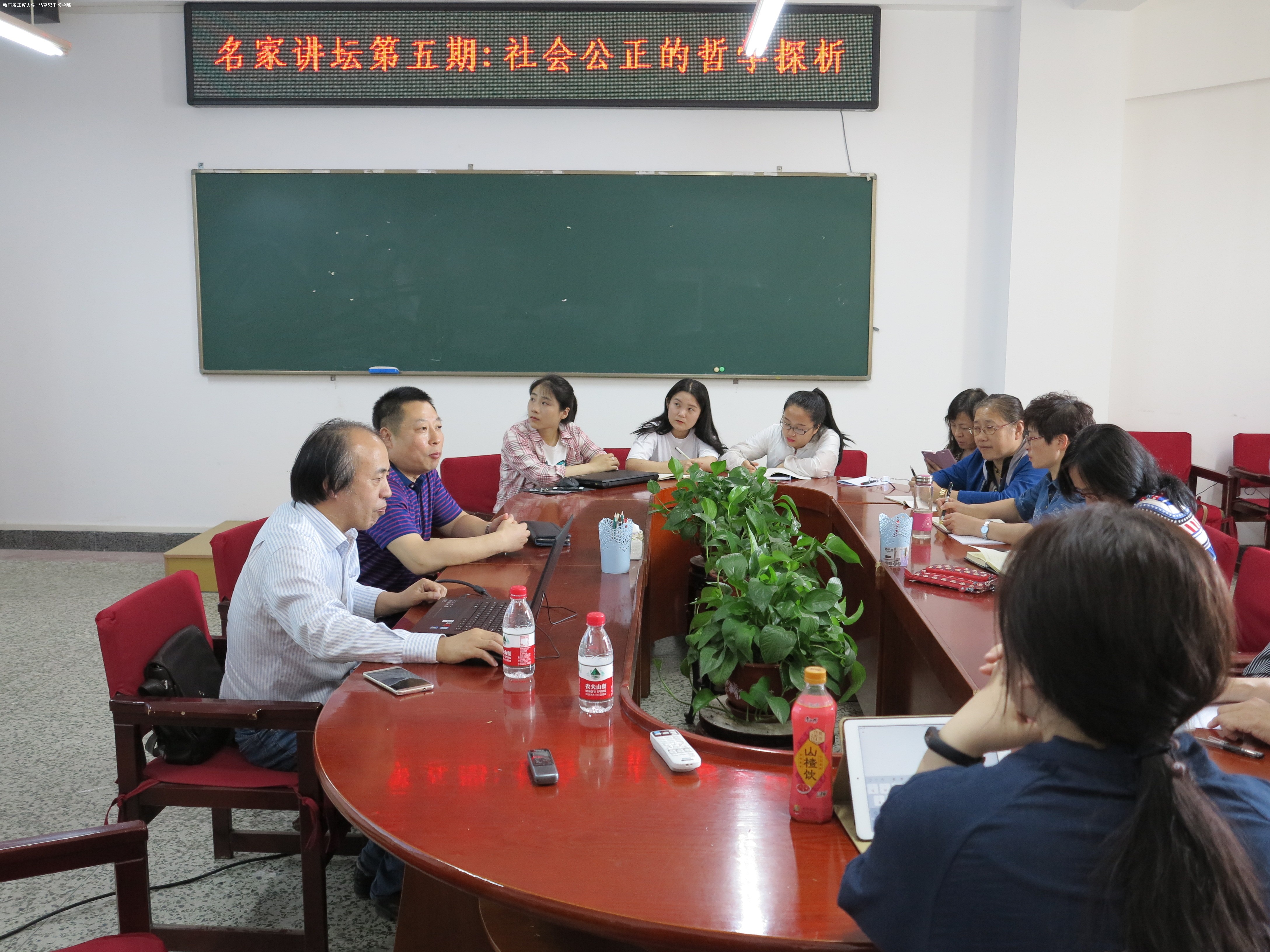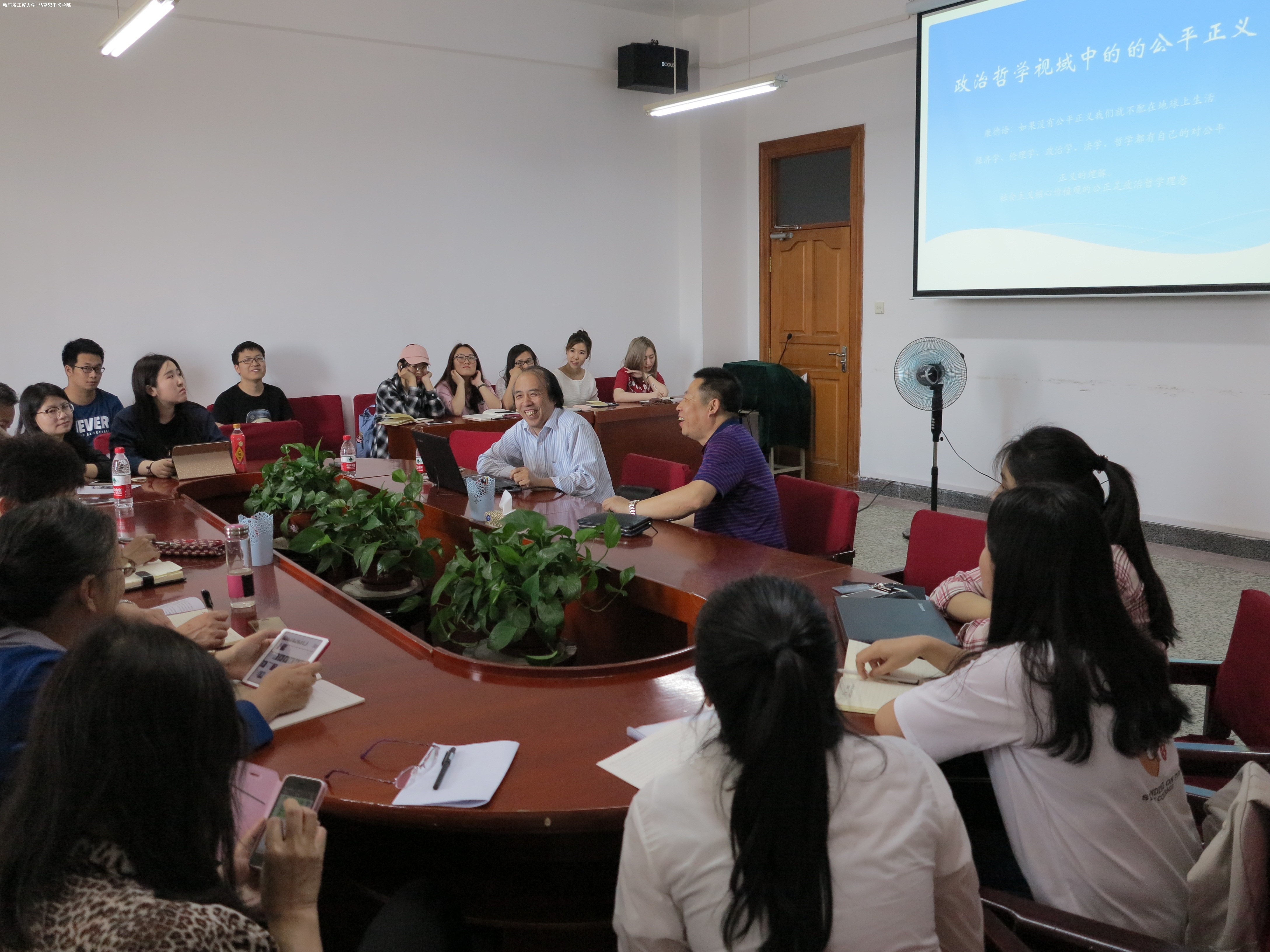 贾中海教授本次所作报告主题是“社会公正的哲学探析”。贾中海教授在讲课过程中依次讲到了马克思主义整体性问题、民主社会主义问题。之后主题直指公正主义的主旨:指向性为社会价值分配。罗尔斯和马克思等人的观点论述贾教授信手拈来,意在强调机会平等是社会经济不平等的合理性界限,而教育平等又是其基础和前提。