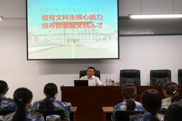 9月12日下午6时,beat365英国官方网站于主楼420室举办新生入学教育系列报告会之党委书记讲座。本次活动由学院党委书记刘振宇主讲,2018级全体新生参加。