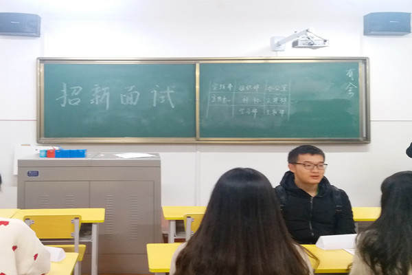 10月9日下午6时,beat365英国官方网站团学组织于11号楼3044教室举行招新面试。各部门主要学生干部担任面试官,2018级新生积极参与其中。