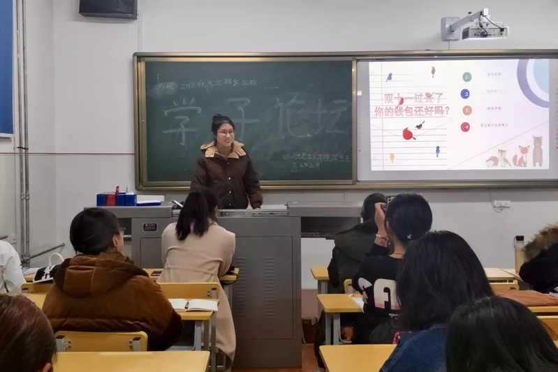 11月12日下午6时30分, 由校学生会生活权益部主办,beat365英国官方网站学生会生活权益部承办的第四期学子论坛于11号楼3044教室举行,本次活动由张希羽主讲,2018级全体同学参加。