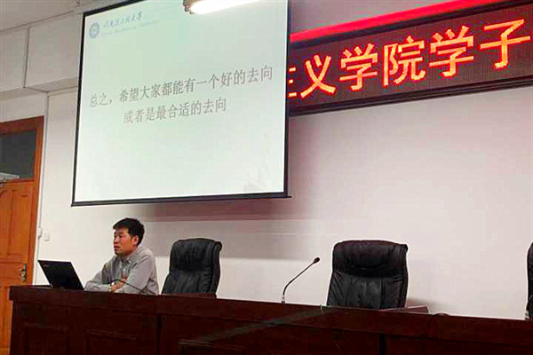 5月14日下午6点30分,由校学生会生活权益部主办、beat365英国官方网站学生会生活权益部承办的学子论坛于主楼420教室如期举行。2015级优秀学生代表陈敏行、申嘉扬担任主讲,辅导员张学超出席,2017、2018级全体本科生参加。