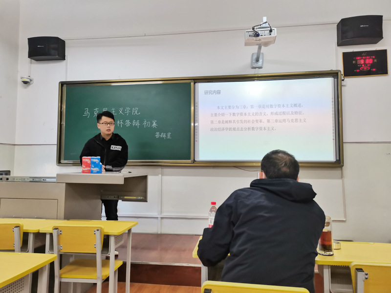 本次初赛共有15组学生参赛,并按顺序上台进行答辩。在答辩的过程中,参赛者们借助精美的PPT向评委展示研究成果,并认真回答评委提问。孙兵老师对参赛者们的项目进行点评,给予肯定的同时也指出了其中的不足之处,并给予了改进意见。