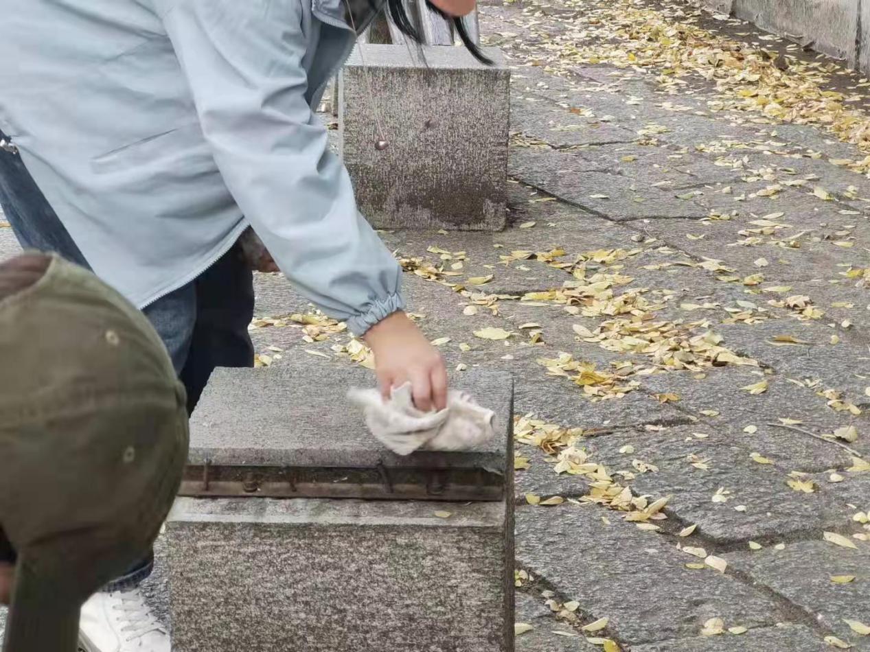 下午两点半,参与本次活动的志愿者们携带清扫工具按时到达济海湾,并开始对济海湾周围的落叶进行清扫,同时擦拭干净了供同学们休息的座椅。正值秋季,落叶较多,志愿者们打扫起来也比较困难,但是参与本次活动的志愿者们都热情高涨。大家纷纷表示愿意为校园环境贡献自己的一份力量。在志愿者们的共同努力下,济海湾变得更加美丽了。