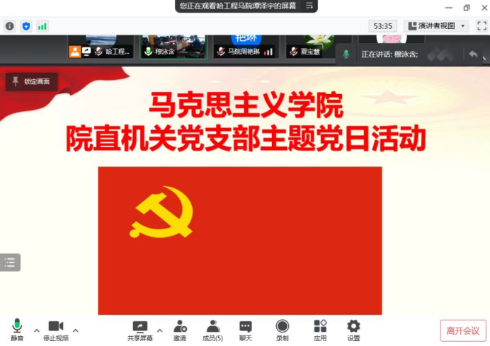 首先,党支部书记谭泽宇同志讲述“扎根龙江,赓续红色血脉——学习贯彻习近平总书记在中国人民大学调研考察时讲话精神”主题微党课,从守正和创新两方面对院直机关支部党支部的同志提出工作要求。他强调,全体机关同志应该坚持我校“三个第一”的价值追求,提高责任心和专业素养;从龙江四大精神中汲取力量,树立大局意识,提高个人素质,充分发挥主观能动性把工作干好。同时,全体机关同志应转变工作态度,提升服务育人的意识,为教学、科研工作和人才培养做出贡献。