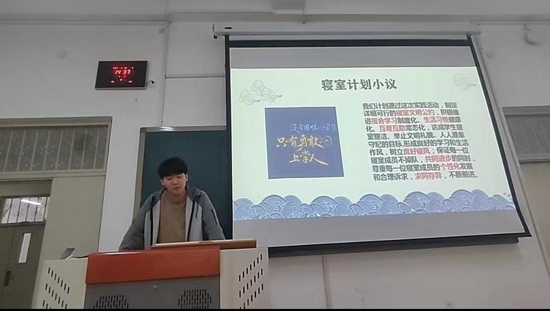数学科学学院以“扫一家到扫天下”为实践教学主题,学院辅导员以“党史中的数学家——马克思与数学”为授课主题,从数学与马克思主义的不解之缘等内容入手,通过数学与强国发展的历史逻辑、数学与新时代民族复兴等研讨问题,引导学生思考如何守住学习数学的使命与初心,从小事做起,筑牢数学“家”文化阵地,担当数学“人”时代使命。学生以寝室为单位分组,制定寝室卫生打扫计划、商议寝室文明公约、凝练寝室文化品牌等,并由每个小组推选一名代表,总结分享本组的实践成果。