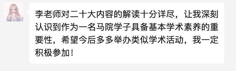 参与本次活动的师生纷纷表示,李世辉教授对党的二十大报告整体脉络认识“很清晰”,对党的二十大报告中的观点认识“很深刻”,学习党的二十大报告的方法“很受用”,对党的二十大精神整体理解“很解渴”,也意犹未尽。