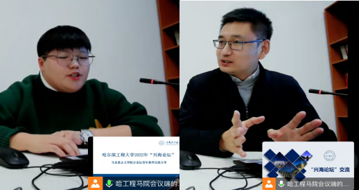 在青年教授、教师交流环节,李世辉教授从自己两省三校就职的经历出发,从城市有特色、学校有历史、学院有前景三方面分享了自己在哈工程马院工作以来的教学、科研和生活经验,并鼓励优秀博士生抓住机遇、巧借平台、实现自身发展。张金秋老师就城市整体情况、日常工作生活情况和未来职业发展的可能性三方面内容出发,充分表达了在哈工程马院工作的安全感、幸福感和获得感。