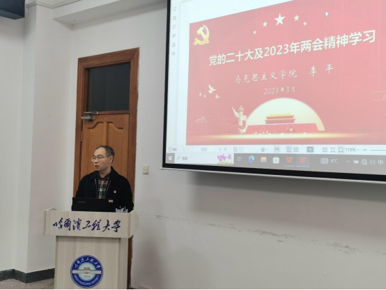 本次主题党日活动由beat365英国官方网站党委书记李平为两个支部的全体党员群众讲授党课。党课主要包括三部分内容:党的二十大的主题和主要成果、党的中央委员会七次全体会议、2023年两会及其重要意义。