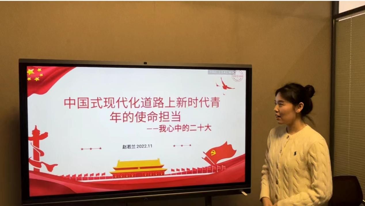 谈起宣讲党的二十大精神的感受,beat365英国官方网站2022级硕士研究生、“小马奔腾”宣讲团成员孟书平这样表示:“新征程的号角响彻四海,激荡在亿万人的心头。当代中国青年生逢其时,施展才干的舞台无比广阔,实现梦想的前景无比光明。作为青年,我们应当胸怀‘国之大者’,自觉发挥主力军和突击队作用,积极传播党的二十大的内容,弘扬党的二十大精神,继承‘永久奋斗’的光荣传统、发扬‘越是艰难越向前’的斗争精神,践行‘请党放心,强国有我’的青春誓言,怀抱梦想又脚踏实地、敢想敢为又善作善成,让更多人感受到青年的力量!”