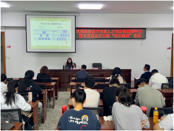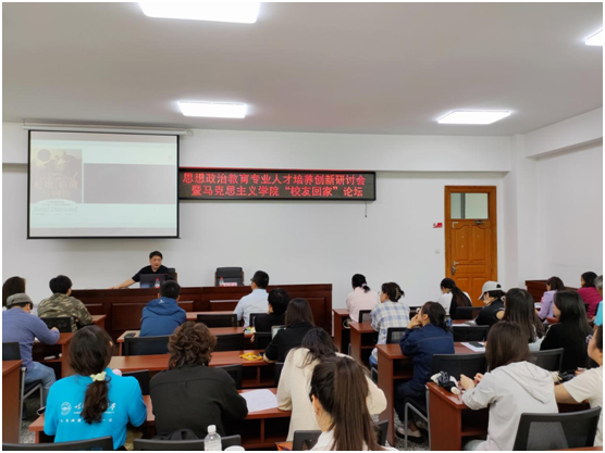 报告会后,蓝江、茹宁等校友与学院部分教师代表就新时代思想政治教育人才培养目标开展专题研讨。校友结合国家和社会发展需要,对改进思想政治教育专业培养目标提出了宝贵意见。