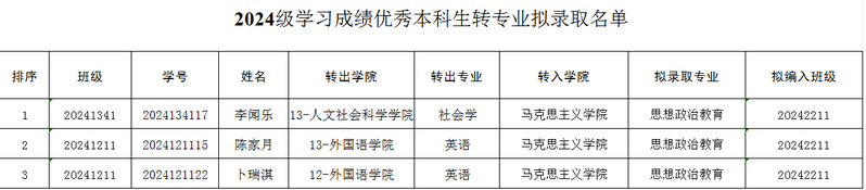 按照本科生院发布的《关于做好2024级学习成绩优秀本科生转专业工作的通知》,经学生报名,学院进行资格审核,成立专家组组织面试,符合录取条件的学生名单见下表。公示期为2024年4月27日-2024年4月29日,公示期内如有异议,请向学院教务办公室反映。
